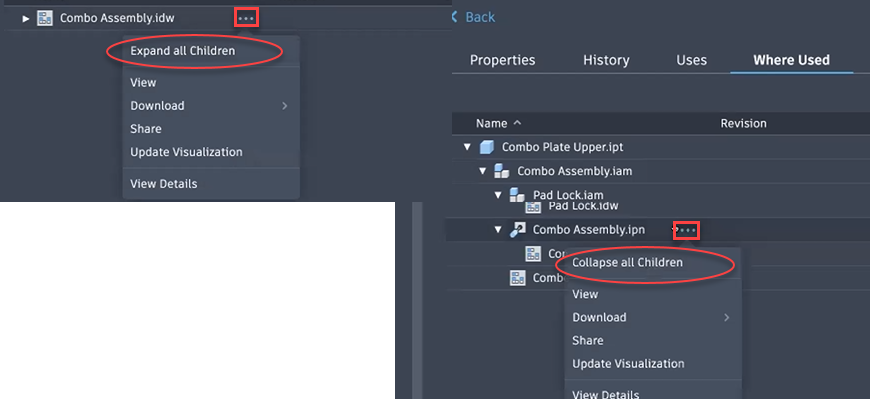 Similarly, to collapse the expanded rows, hover over the parent row and select the ellipses icon (…) to select "Collapse all Children".