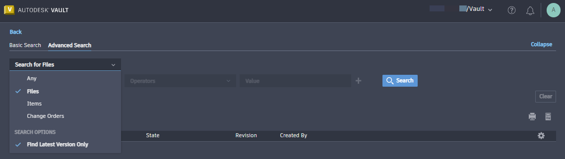 - If the "Show latest version of file/item" option is turned on in the Administrator Settings, the "Find Latest Version Only" search option is selected and disabled.