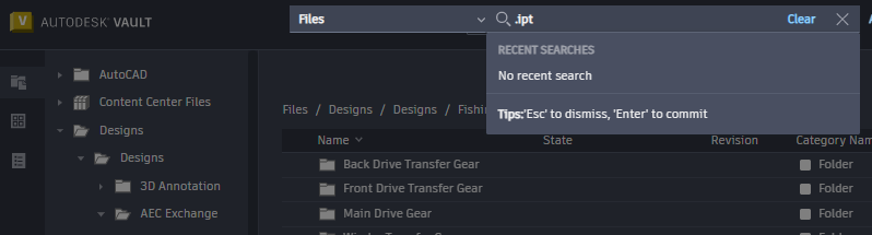 - Files - a basic search locates files and folders in the current folder and/or subfolders, and optionally, searches the latest version only.