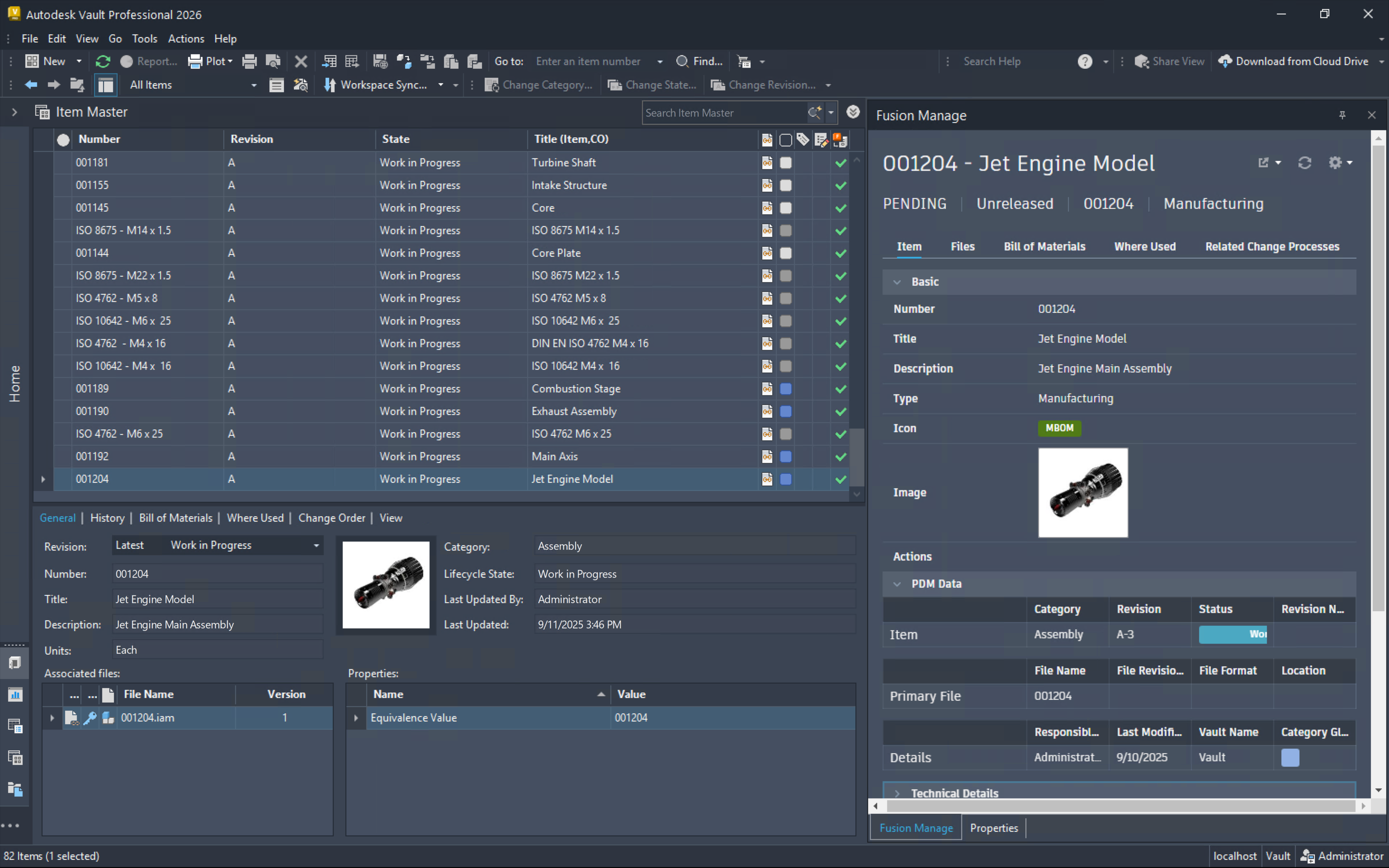 Vault 2026.2 introduces the Fusion Manage panel, which displays Fusion Manage information directly within the Vault client. This panel allows you to view information from both systems without switching interfaces, reducing context changes and improving workflow efficiency.