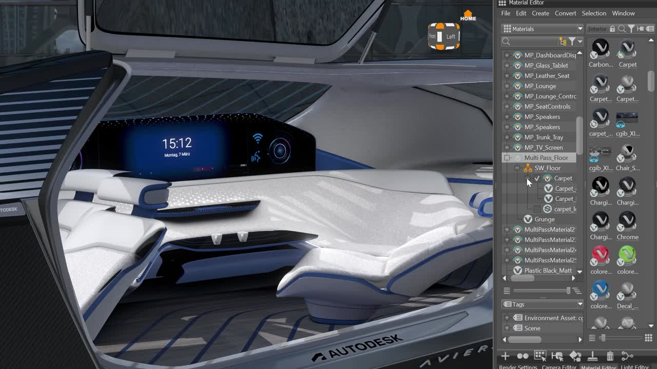 The decoupling of the Material Editor has made it possible to access all properties via the Python API. This is very helpful for automation and accessing material properties, using VRED Core, for example. You will find many improvements and new features added to the menus, filtering, Material Graph, context menu, Group Preview, Attributes, and the QuickActions Bar.