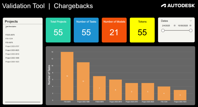 You can download a sample Microsoft PowerBI template that will track token consumption per project for chargebacks utilizing the description field of your tasks.