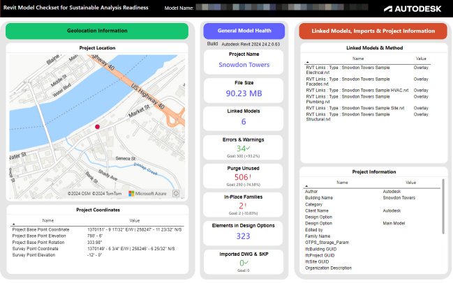 You can download a sample Health Dashboard Model Checker checkset XML, a Microsoft PowerBI template, and instructions. This sample will track a single Revit project over time. You can also watch a video on this template here: