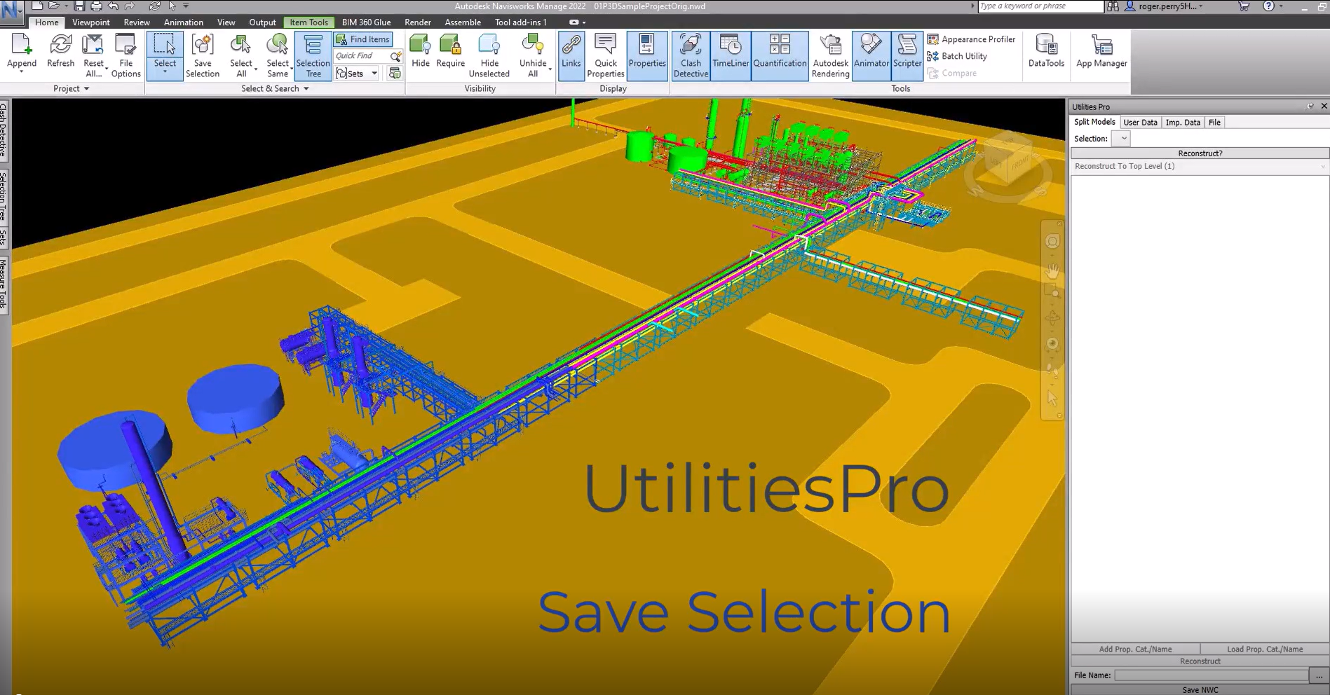 Utilities Pro is a Navisworks plug-in that conditions Navisworks models to support engineering, construction and operational workflows. Utilities Pro has the following capabilities: